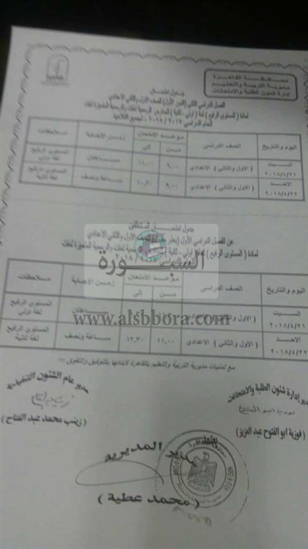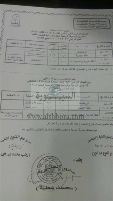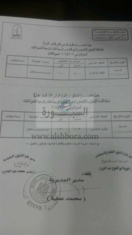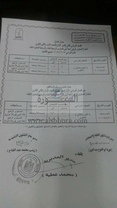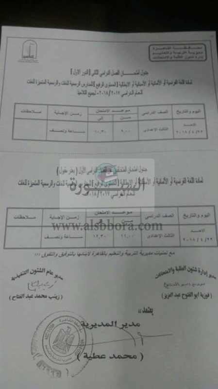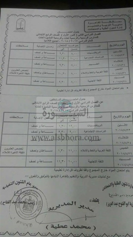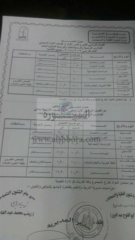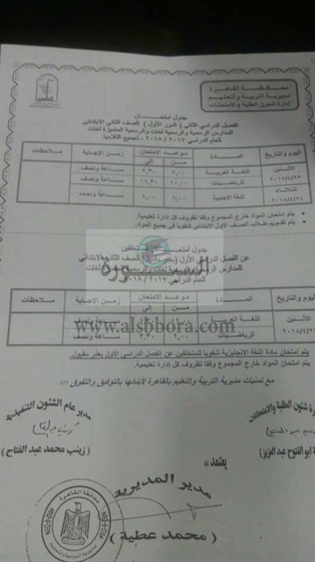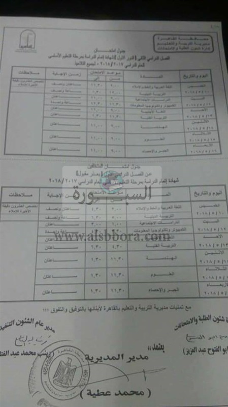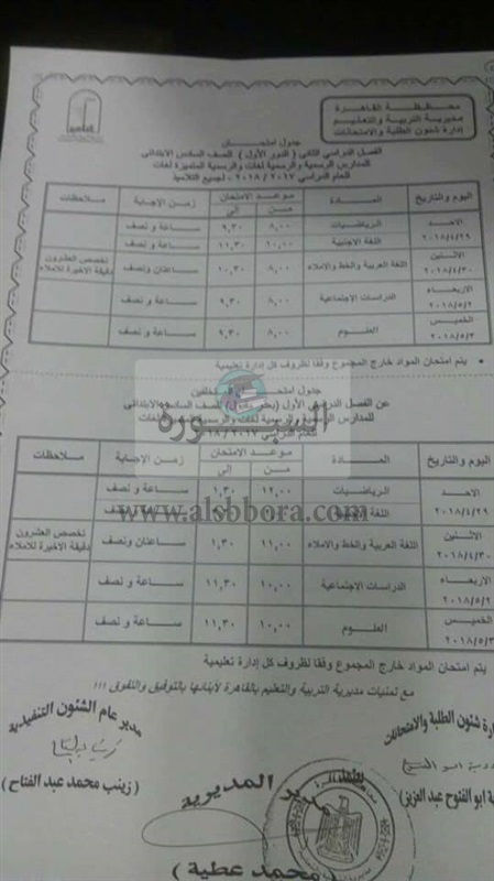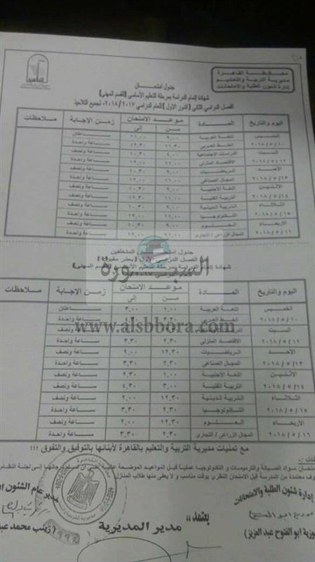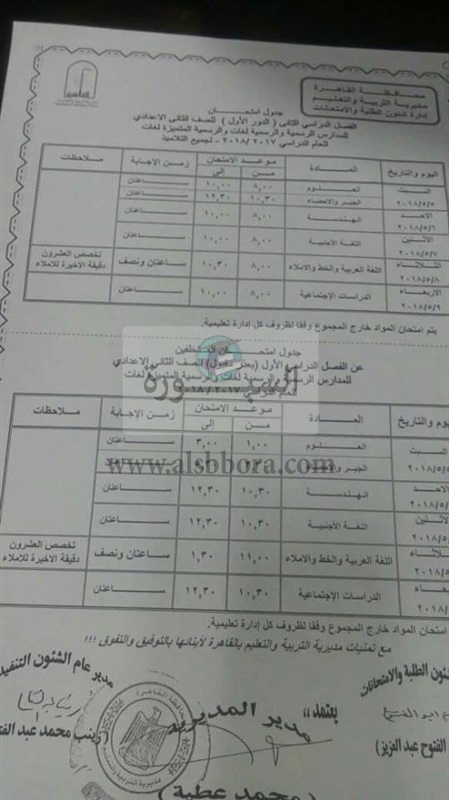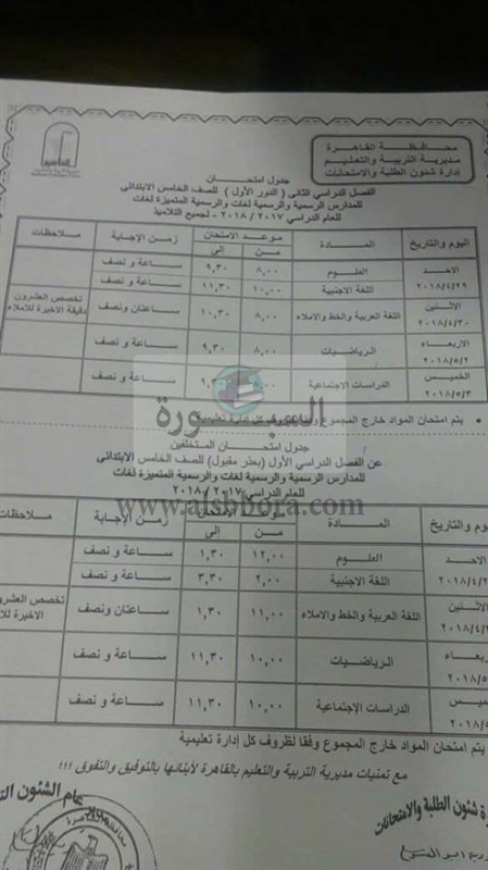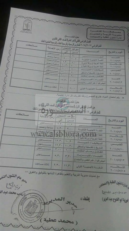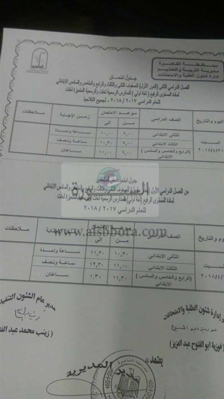 ينشر موقع السبورة جميع جداول امتحانات آخر العام للعام الدراسى 2018/2017، لجميع المراحل التعليمية "الابتدائى والاعدادى والثانوى"، لمديرية التربية والتعليم بمحافظة القاهرة.