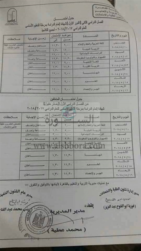 ننشر جداول امتحانات آخر العام لجميع المراحل التعليمية بالقاهرة