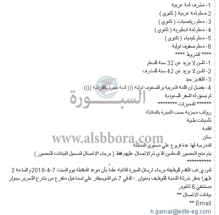 تعلن مدرسة خاصة في السعودية عن وظائف جديدة للمعلمين والمعلمات وذلك وفقا لنص الإعلان التالي:-