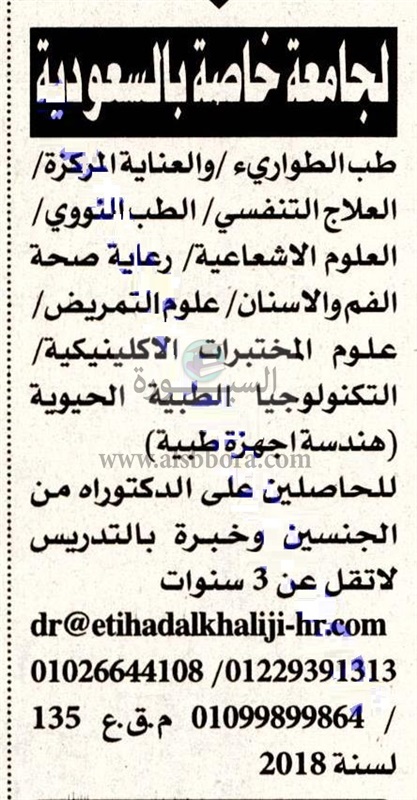 تعلن جامعة سعودي كبري عن وظائف جديدة لأعضاء هيئة التدريس"من حملة الماجستير والدكتوراه" ذلك وفقا لنص الإعلان التالي: