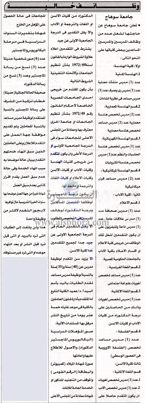 جامعة سوهاج تعلن عن حاجتها الى أعضاء هيئة التدريس فى 3 كليات بجميع التخصصات.. ننشر نص الاعلان