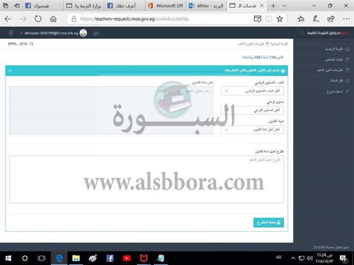 بالصور.. كيفية التسجيل على موقع الوزارة خدمات المعلمين ( النقل - تغيير المسمي الوظيفي - مقترحات تعديل القانون)