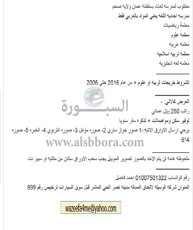 تعلن مدرسة خاصة في سلطنة عمان عن وظائف جديدة للمعلمين والمعلمات وذلك وفقا لنص الإعلان التالي:-