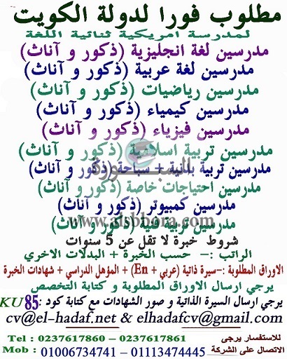 تعلن مدرسة خاصة في الكويت عن وظائف جديدة للمعلمين والمعلمات وذلك وفقا لنص الإعلان التالي:-