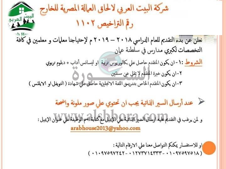 تعلن عدد من المدارس الكبري بسلطنة عمان تعلن عن وظائف جديدة للمعلمين والمعلمات في جميع المواد وذلك وفقا لنص الإعلان التالي:-
