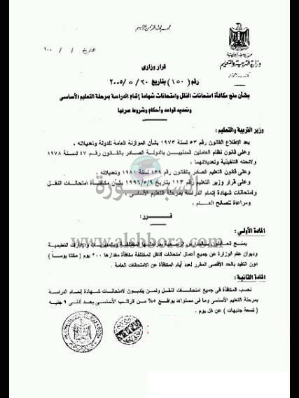 بالمستندات| ننشر القرار 150 بشأن قواعد صرف مكافأة الامتحانات لجميع المراحل التعليمية