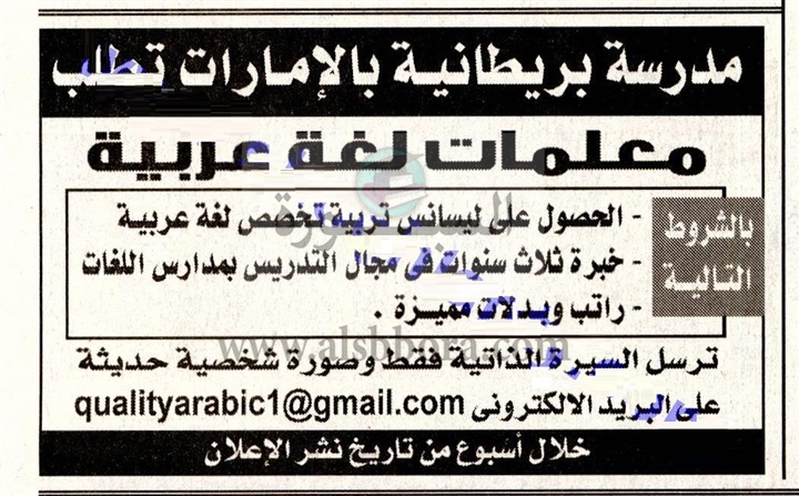 تعلن مدرسة خاصة بالإمارت عن وظائف جديدة للمعلمين والمعلمات وذلك وفقا لنص الإعلان التالي:-