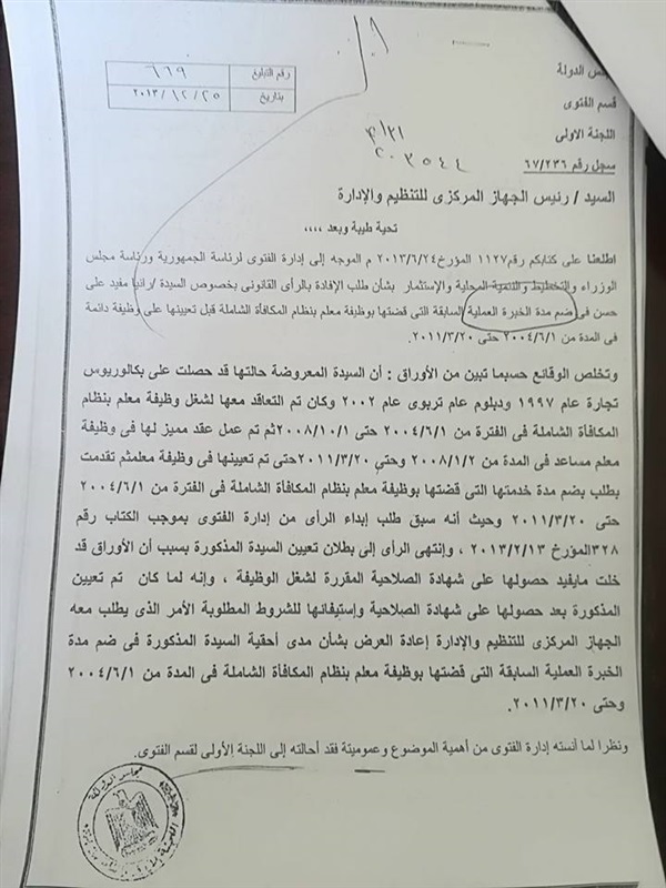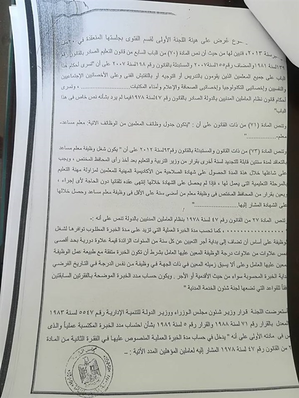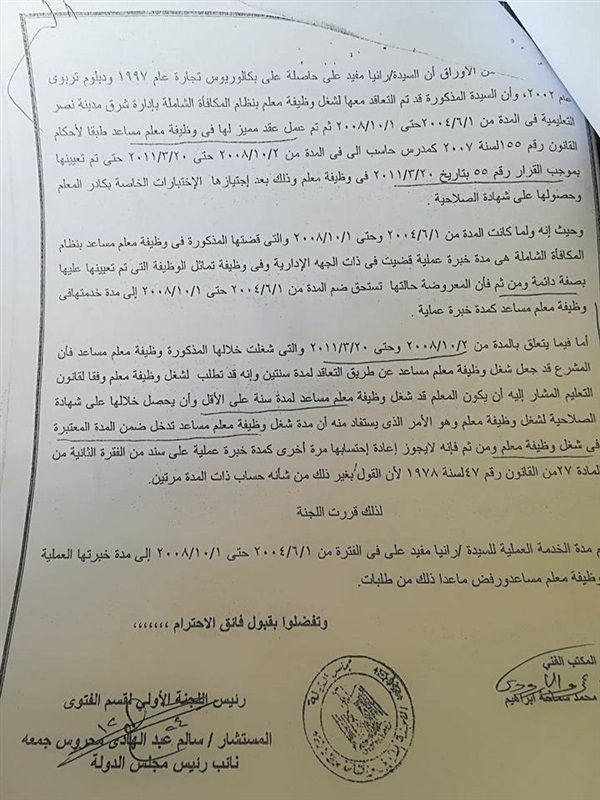 بالمستندات| ننشر فتوى مجلس الدولة بأحقية المعلم فى ضم المدة السابقة على شغل وظيفة معلم مساعد