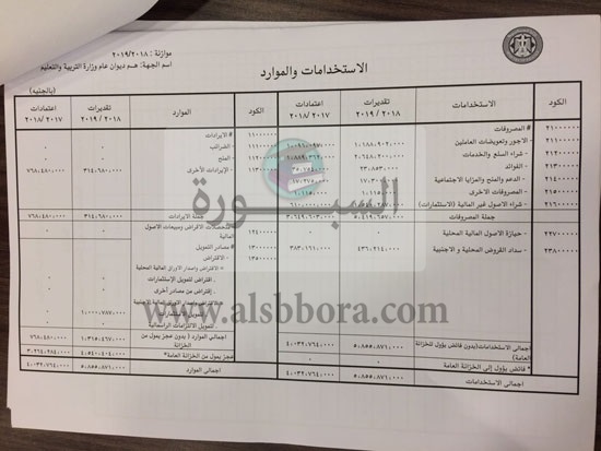 حصلت "السبورة" نسخة من "موازنة ديوان عام وزارة التربية والتعليم" للعام المالي 2018/ 2019.