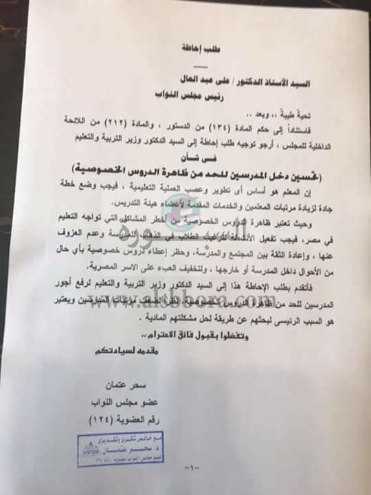 في إطار تحركات برلمانية جادة لرفع مرتبات المعلمين تقدمت النائبة سحر عثمان بطلب احاطة لزيادة مرتبات المعلمين.