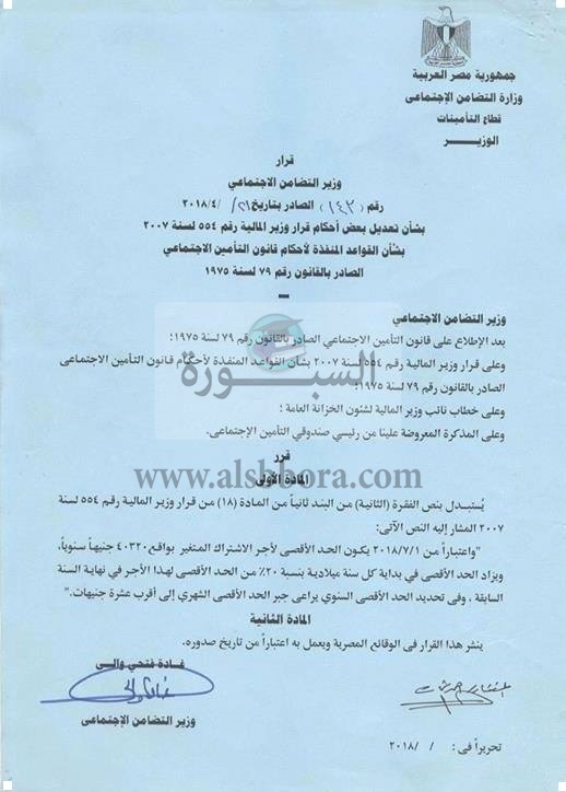 بالمستندات| زيادة الحد الاقصى للأجر 20% اعتبارا من يوليو 2018