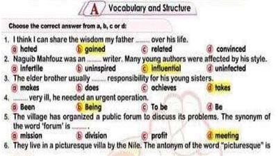 أكثر من 750 سؤلا وإجابتهم فى اللغة الانجليزية للثانوية العامة