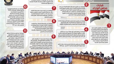 بالإنفو جراف.. مجلس الوزراء يصدر 11 قرارا وزاريا خلال اسبوع.. ابرزهم تدريس اللغة الفرنسية.. وتوفير التدريب اللغوى للمعلمين