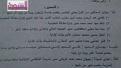 "رشة " خصومات من محافظ المنيا علي قيادات مغاغة التعليمية المسئولين عن الحريق