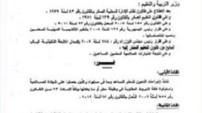 "السبورة " تنفرد .. اجراءات تعيينات المعلم المساعد 27 اكتوبر وننشر نص القرار