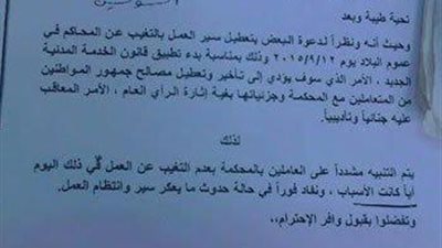 "العدل" تحذر : تطبيق قانون الخدمة المدنية ليس عذرا لتعطيل العمل بالمحاكم