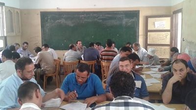 بالصور.. معلمي الأقصر يبدأون تصحيح امتحانات الثانوية الأزهرية "علي الأرض"
