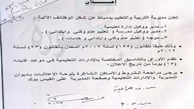 "تعليم دمياط" تعلن وظائف شاغرة بالادارات والمدارس