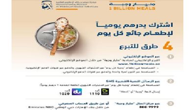 "مليار وجبة" المبادرة الإنسانية الأكبر في المنطقة تنطلق اليوم من دولة الإمارات للفقراء والمحتاجين حول العالم