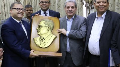 "امين لطفي " يكرم الدكتور عبد الرحمن سليم خلال اجتماع مجلس ادارة مركز المؤتمرات
