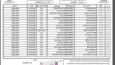 أسماء المعلمين المساعدين المعينين علي درجة معلم بمحافظة " الاسكندرية "