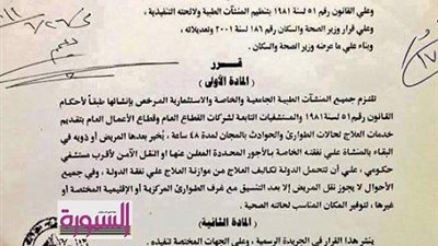 " الوزراء " غلق المنشأت الصحية التي ترفض استقبال حالات الطوارئ ..ننشر قرارالعلاج لمدة 48 ساعة بالمجان