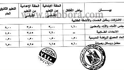 "التعليم" تعلن عن المصروفات الدراسية للعام الجديد 2017/2016.. رياض الاطفال 45.. والثانوية العامة 85 جنيها