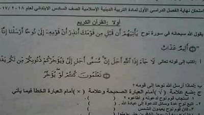 شكوى من تلاميذ الصف الثالث الابتدائى بالجيزة بخصوص امتحان التربية الدينية