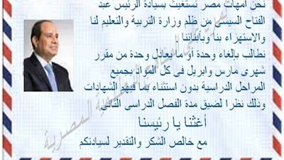 "أمهات مصر " : شكرا ياوزارة ونستغيث بـ " الرئيس" من ظلم التربية والتعليم